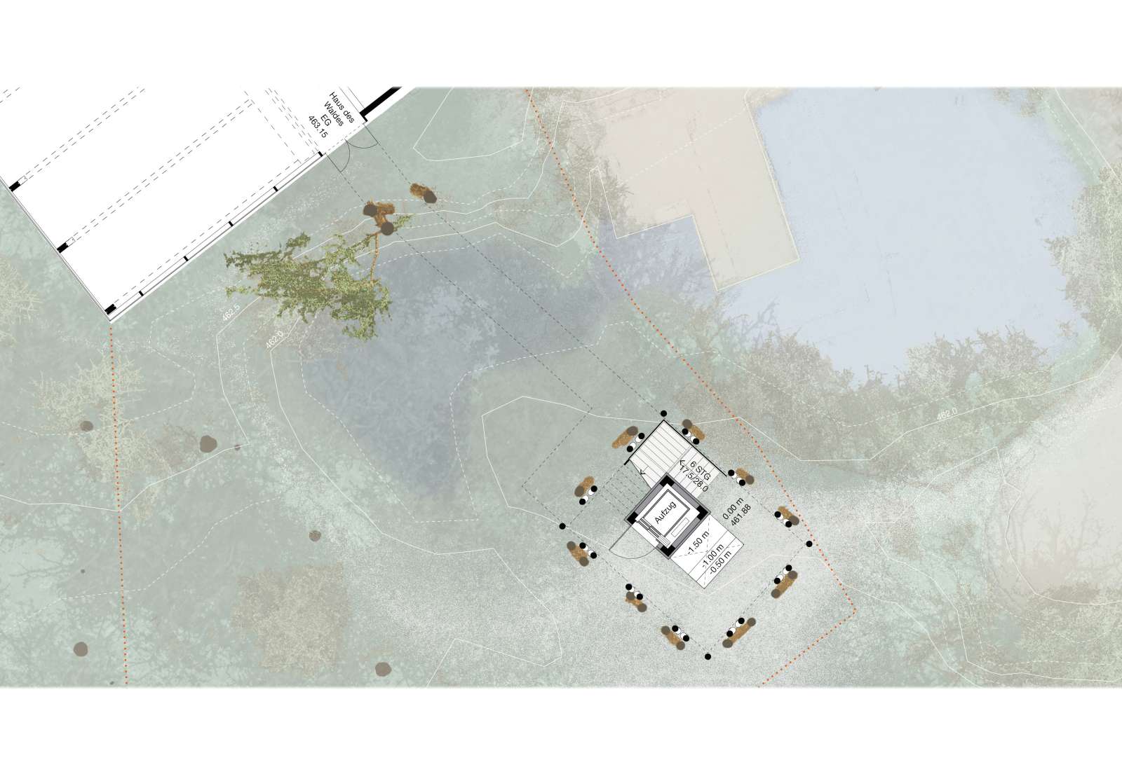 Insgesamt entwickelt der Entwurf einen architektonischen Rahmen, in dem der Wald selbst zum Akteur wird. Der baubotanische Bildungsbaum ist Aussichtspunkt, Lernraum, Habitatgerüst und lebendiger Prozess zugleich. Seine architektonische Qualität liegt darin, dass Baubotanik und Biodiversität das Projekt von Beginn an prägen – räumlich, didaktisch und zeitlich. So wird der Bildungsbaum zu einem Bauwerk, das aus der Logik des Waldes heraus gedacht ist und die Leitidee des Hauses des Waldes in gebaute Form übersetzt.